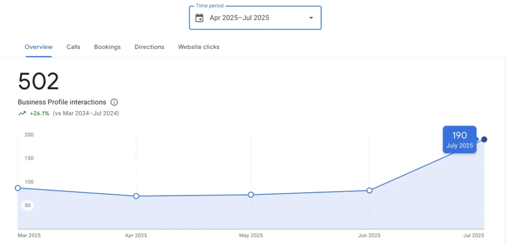 ✅ Track Key Metrics in Your Google Business Profile – Monitor increases in calls, bookings, directions requests, website visits, and all other profile interactions.